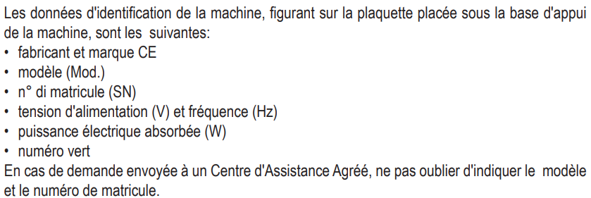 Lisez le chapitre Données d'identification dans SAV de la notice