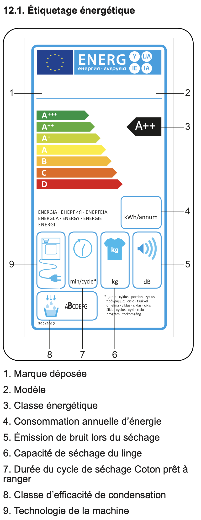 Lisez le chapitre DESCRIPTION DE L’ÉTIQUETTE ÉNERGÉTIQUE ET ÉCONOMIE D’ÉNERGIE dans SAV de la notice